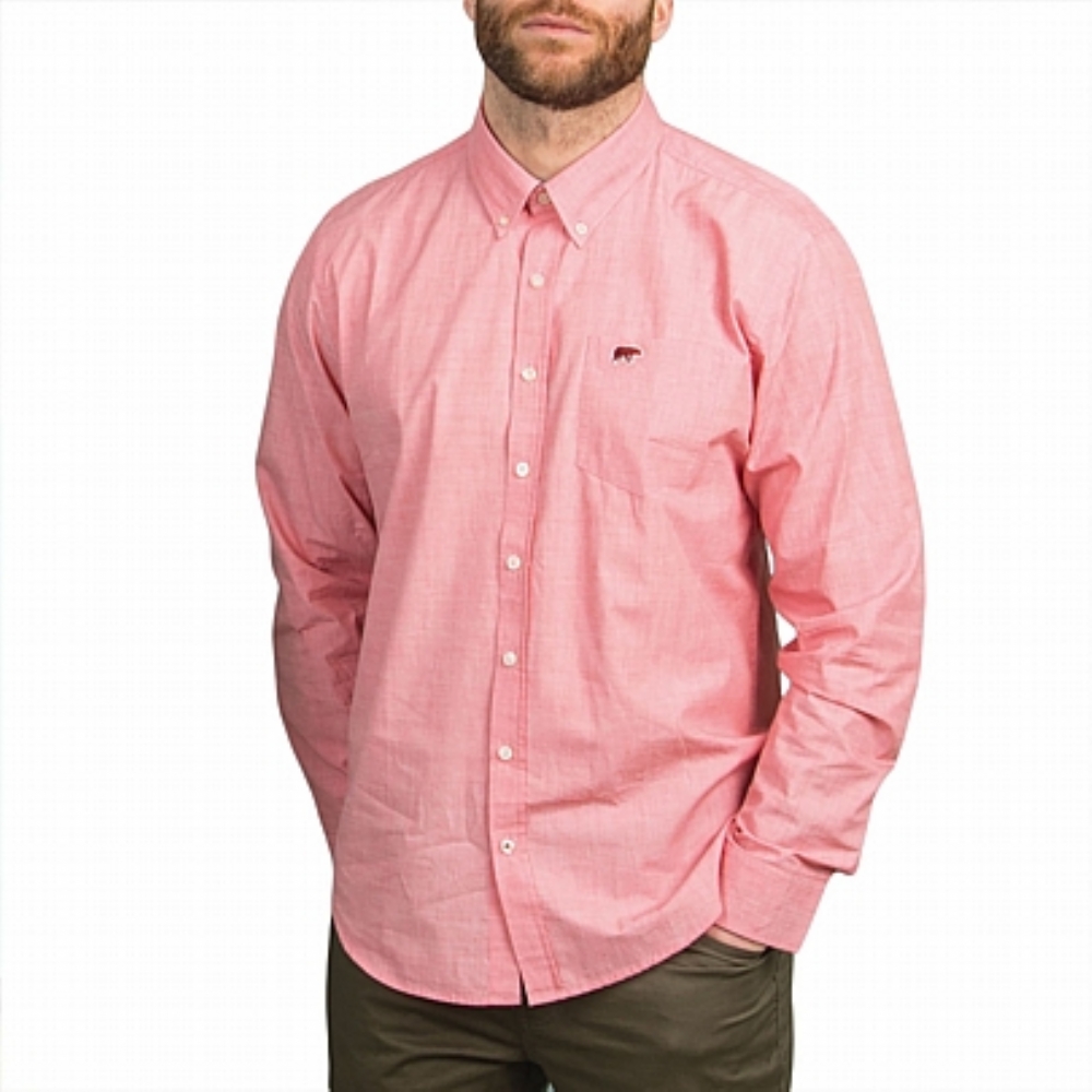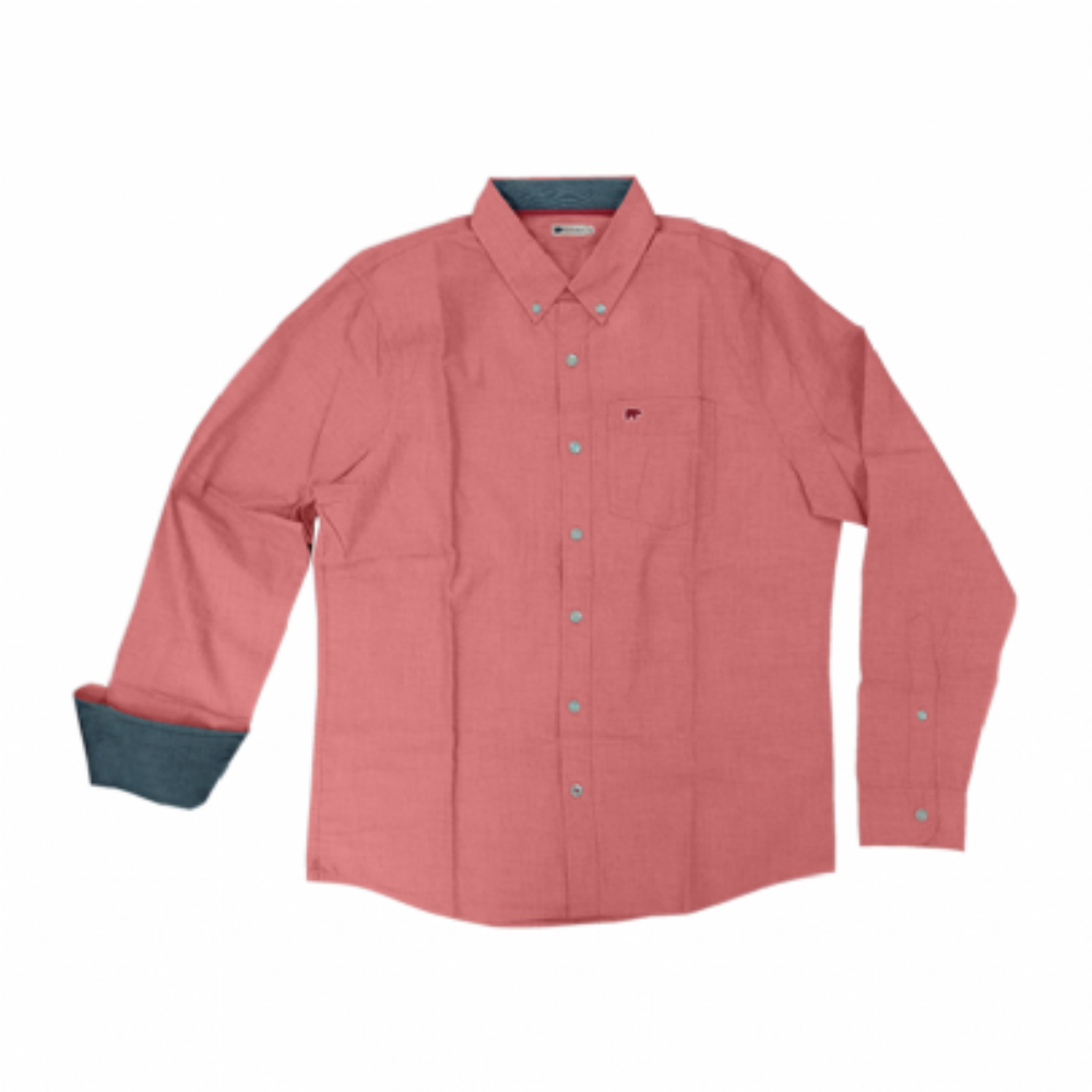 Λινό πουκάμισο μακρύ μανίκι σε κοραλί χρώμα