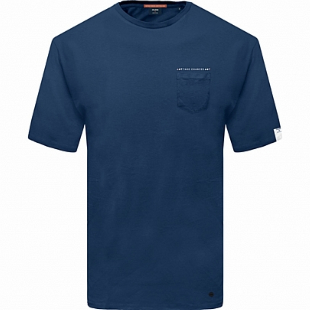 Ανδρικό βαμβακερό T-shirt με τσεπάκι στο στήθος σε μπλέ σκούρο χρώμα