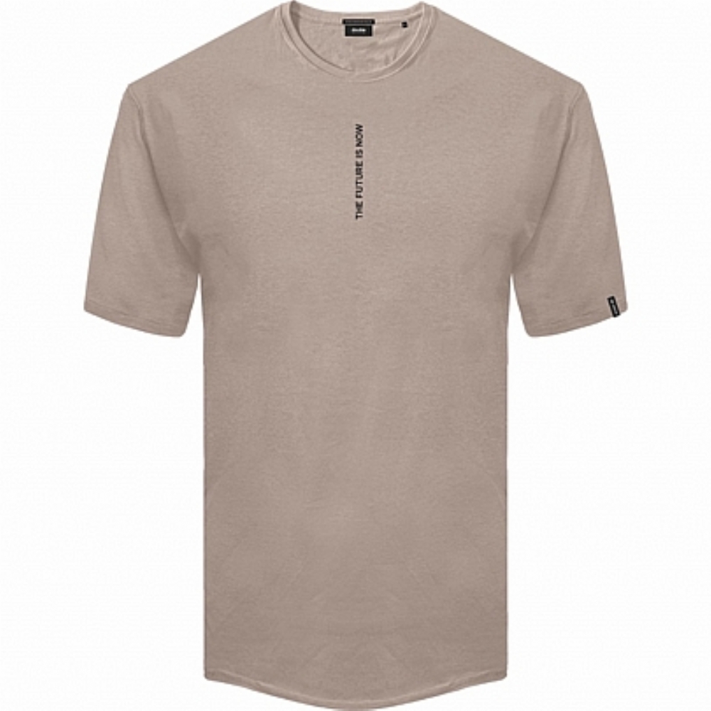 Μπλούζα κοντομάνικη με τύπωμα στο στήθος και στην πλάτη σε μπεζ σκούρο