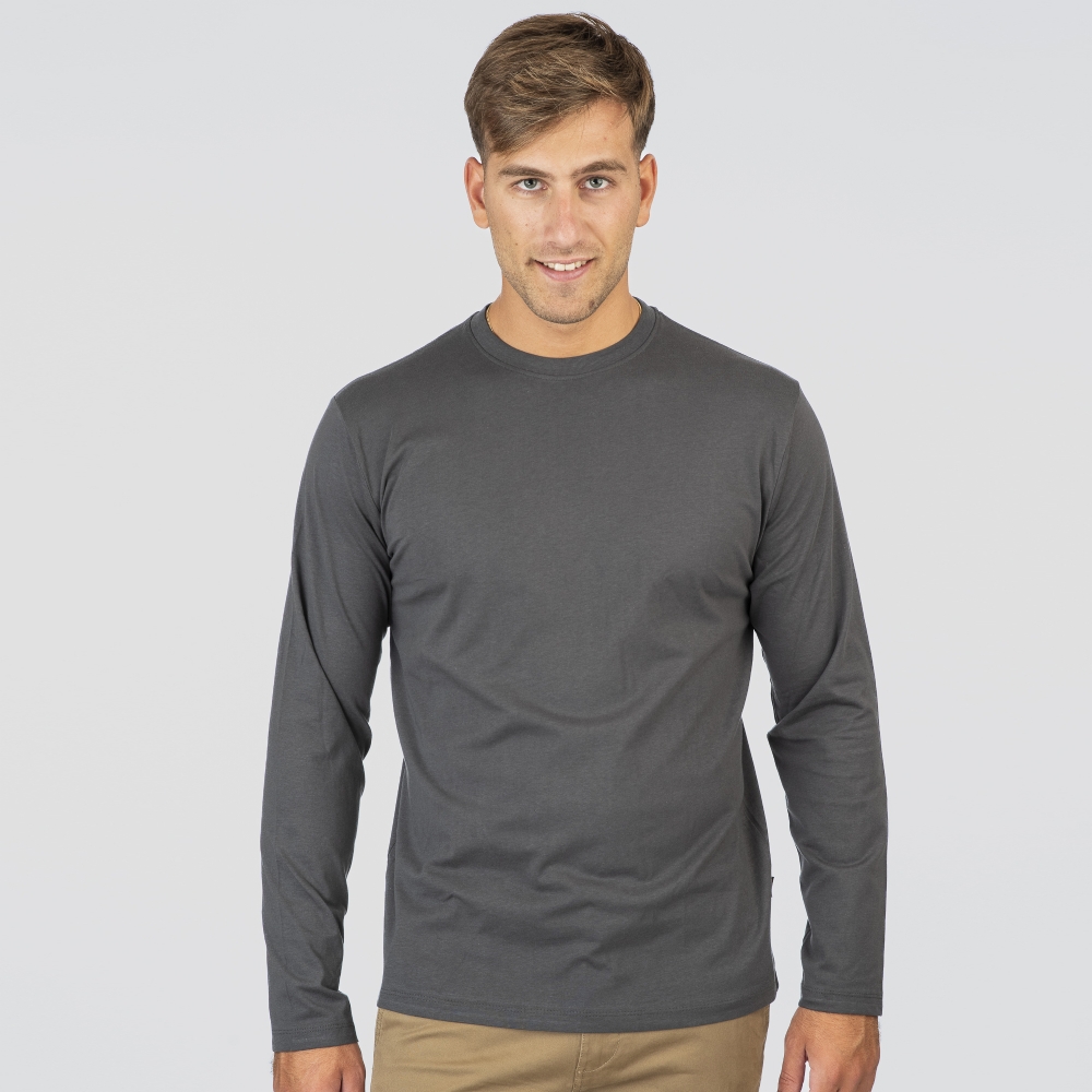 T-shirt μακρυμάνικο μονόχρωμο σε ανθρακί