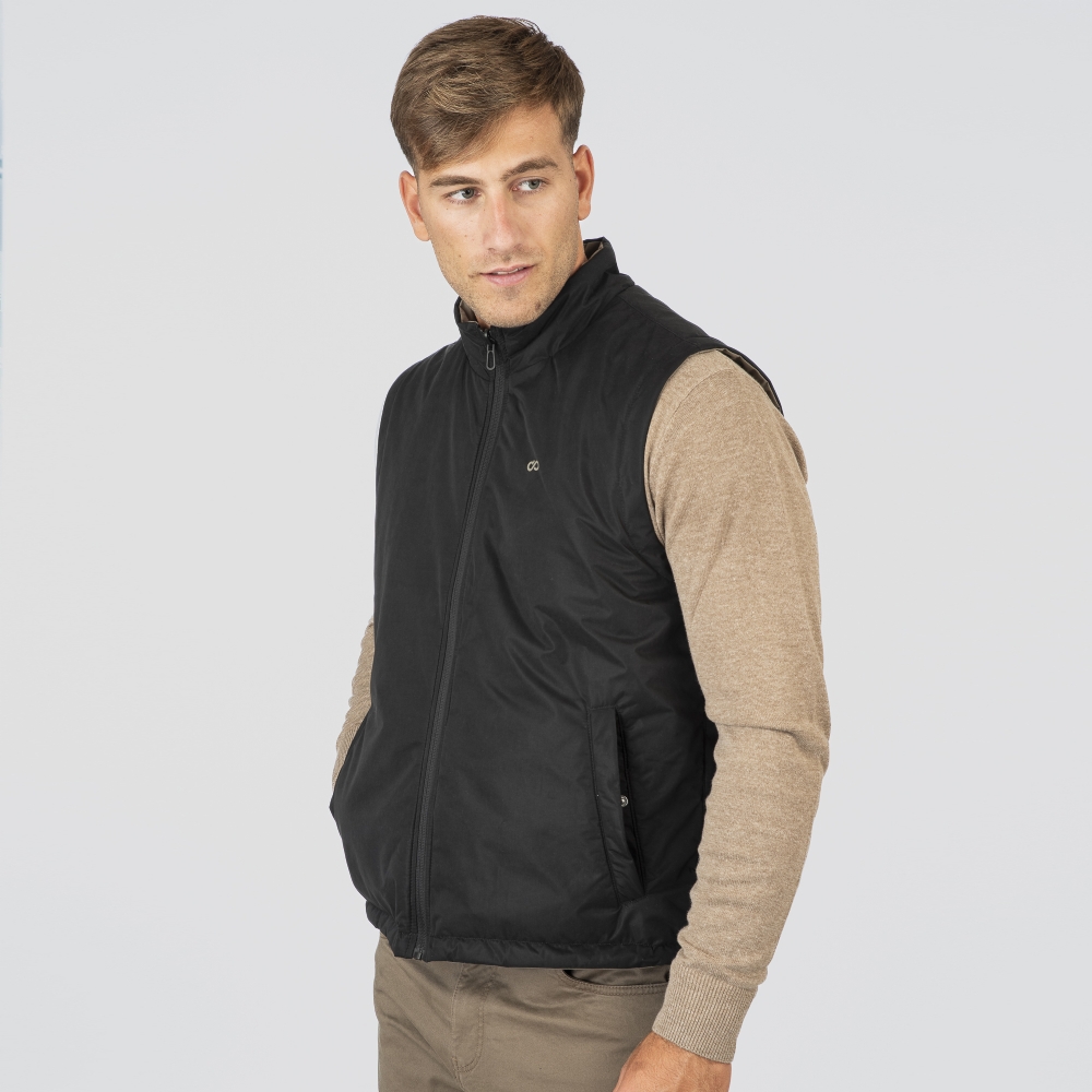 Aμάνικο γιλέκο διπλής οψης σε μαύρο-μπεζ σκούρο