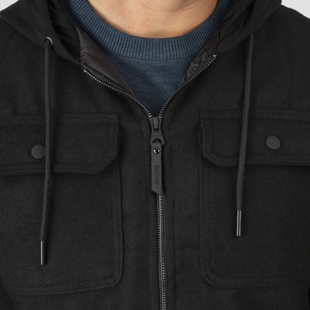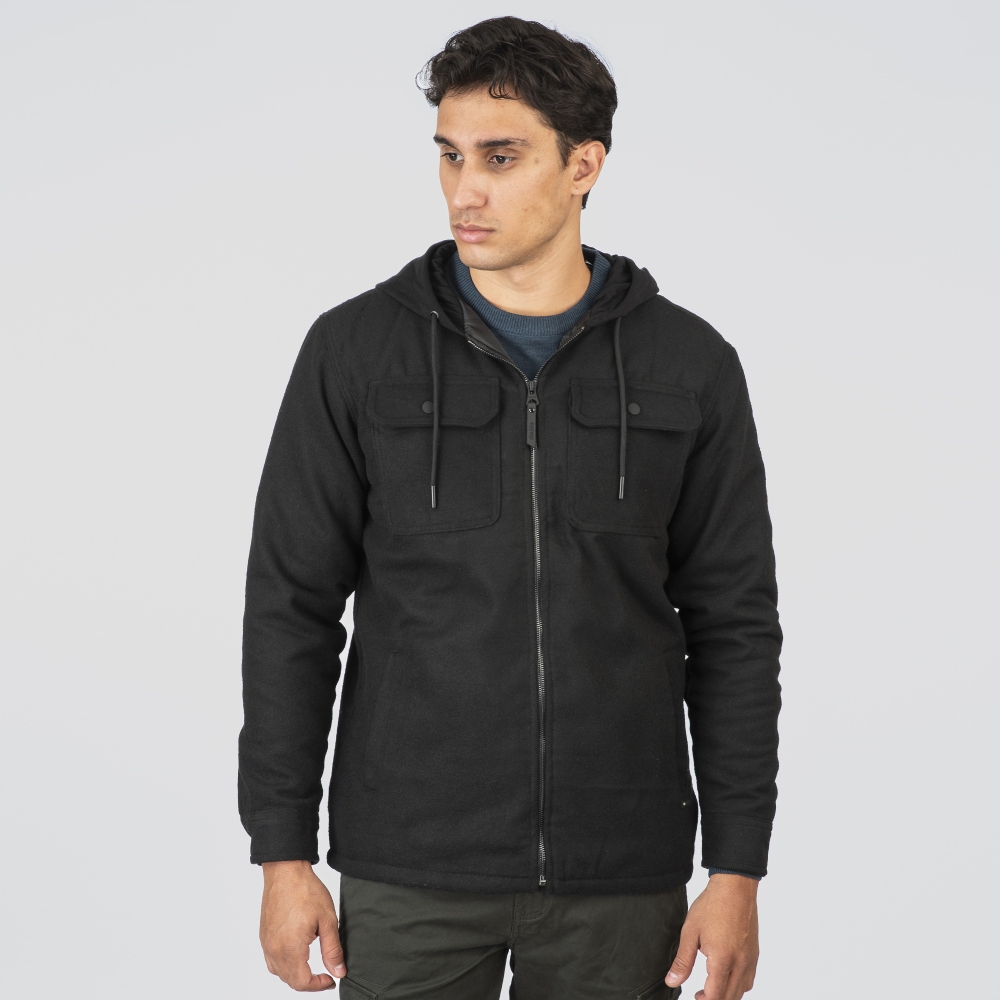 Overshirts Heavy Flannel with Zipper, Hood and Quilted Padding σε μαύρο