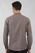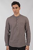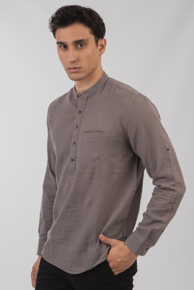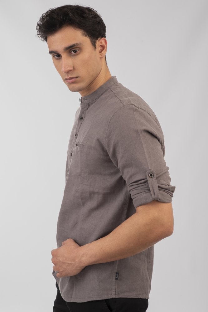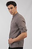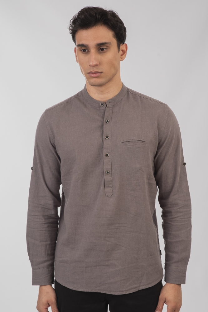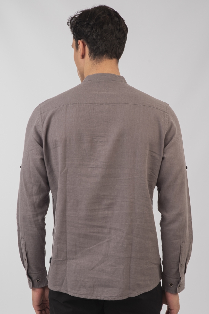 Πουκαμίσα λινή Μάο με τσέπη σε γκρι