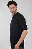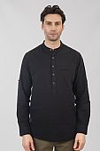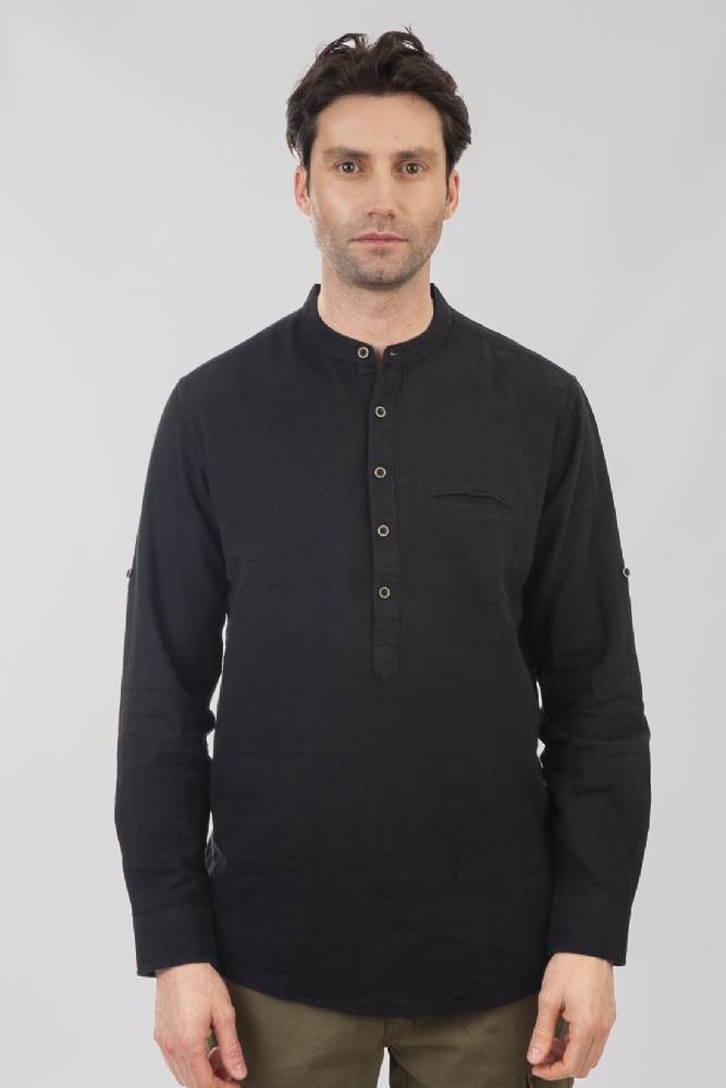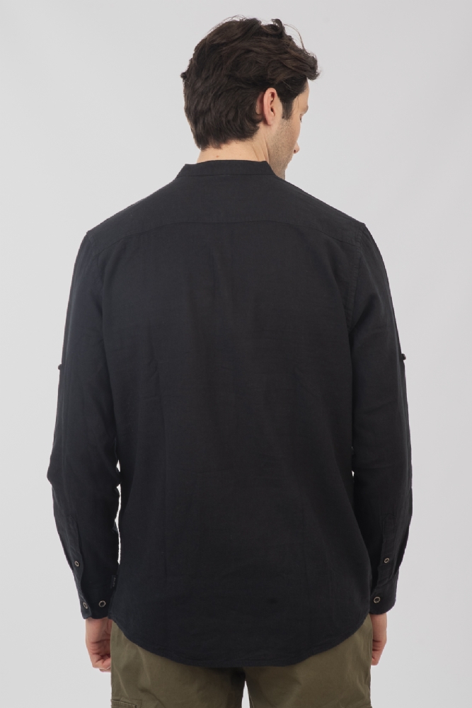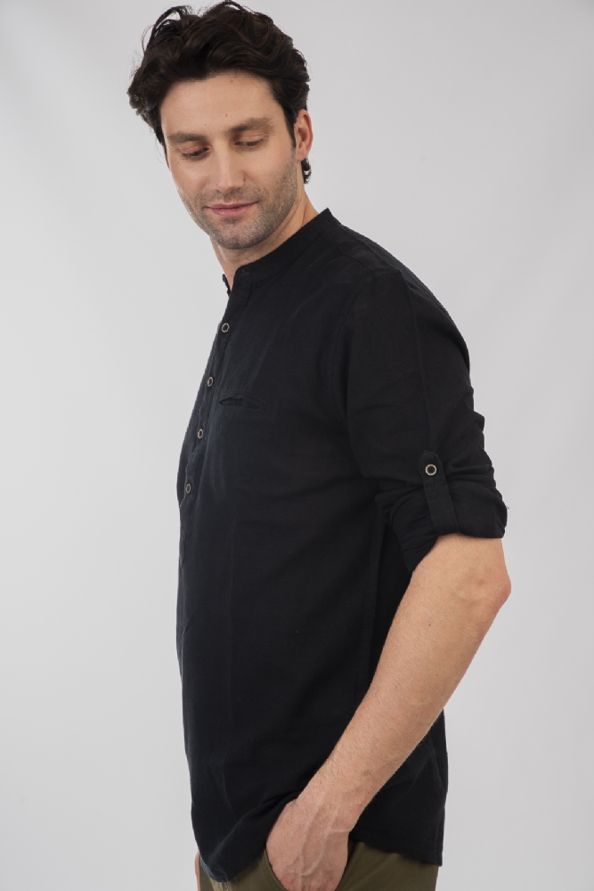 Πουκαμίσα λινή Μάο με τσέπη σε μαύρο