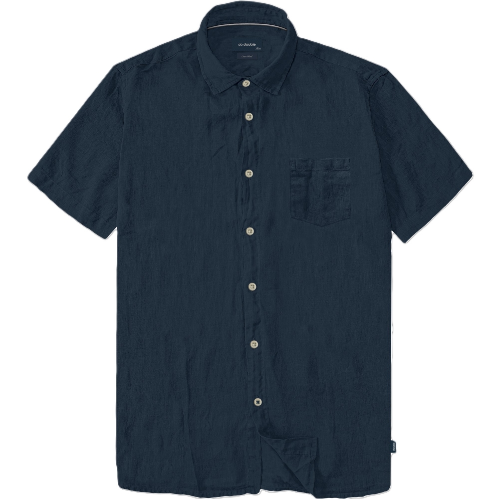 Πουκάμισο λινό κοντό μανίκι σε σκούρο μπλε